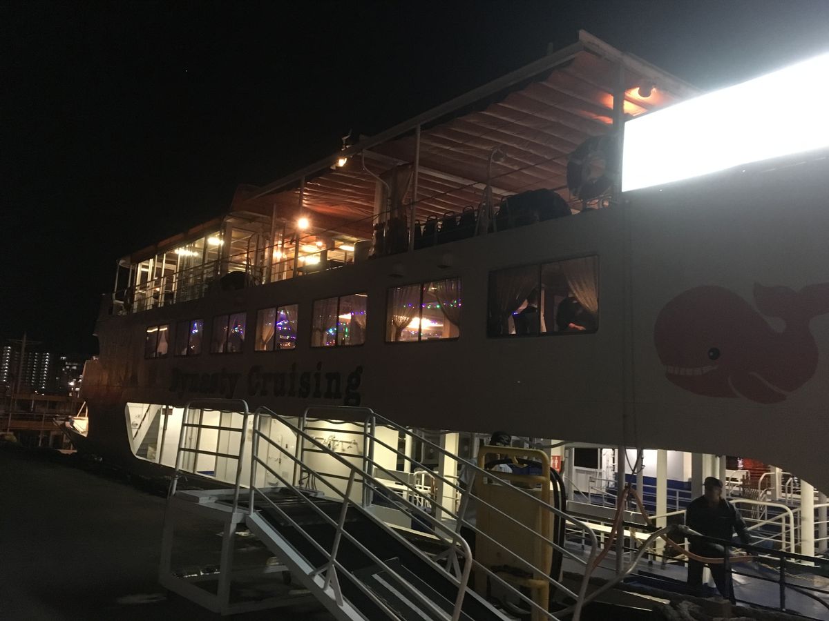 サンセットは天気がいまいちだったのでハッキリ見えなかったけど、クルーズと言う割には港内を移動しているだけでクルーズとまで行かないと思う。その分夜景もあまり見えないし、同じ景色ばかりで眺めは良く無かったです。