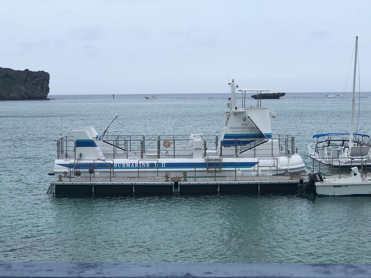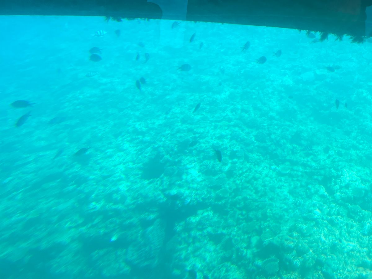 チェックイン時刻に遅れてしまいましたが、乗船開始は5分前だったので間に合いました。船内は、外国の方が多めでした。ポイントに着くまでは、外の眺めを楽しみました。ポイントに着くとスタッフの方が知らせに来てくれて、水中鑑賞室へ移りました。思っていたより、たくさんの魚を見ることができました。エサをまいていたのか、群れで表れたりもしました。あっという間に時間が過ぎ、15分ぐらい鑑賞すると修了のお知らせがあり、デッキに戻りました。