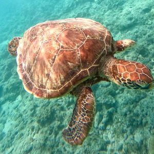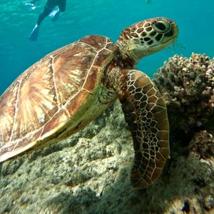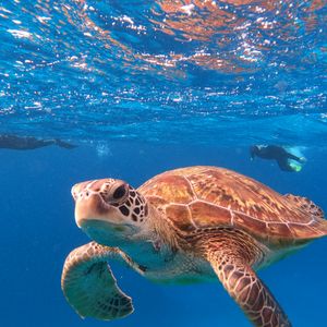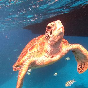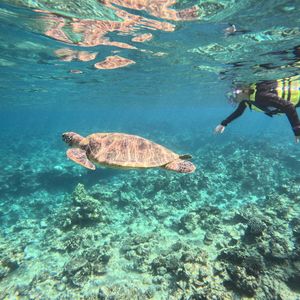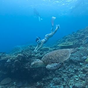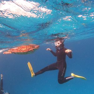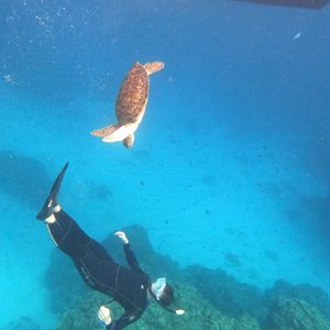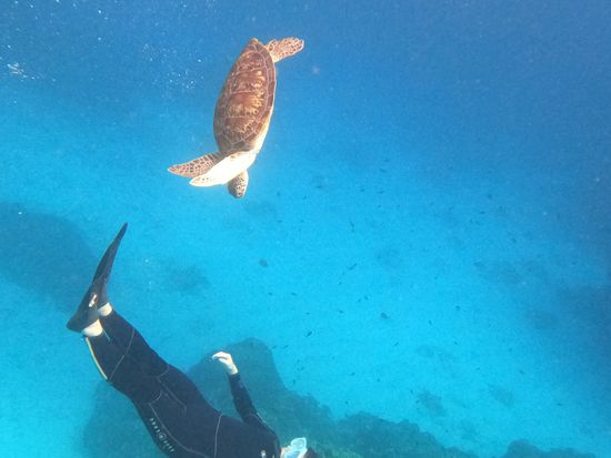 海亀を見れたらいいなと思って参加しましたが、一緒に泳いだり一緒に写真まで取れて最高の体験になりました。