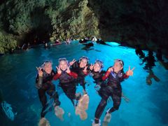 泳げない方やお子様でも楽しめるシュノーケル&マリンアクティビティのセットプラン!プカプカ浮きながら青の洞窟を満喫した後、海中でも呼吸ができるヘルメットをかぶり海底をゆっくり散策したり、マリンスポーツやパラセーリングなど、選んだプランのマリンアクティビティでお楽しみいただけます♪SDO(Safety Diving in Okinawa)や恩納村観光協会などに加盟し、安全面も徹底。美しい景色と沖縄の海の生き物たちとの触れ合いをご堪能ください。