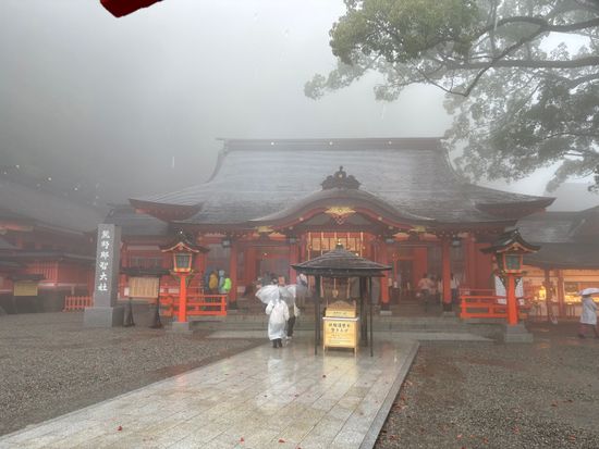 467段におよぶ石段の上に立つ6棟からなる社殿は、標高約330mに位置し、夫須美神(ふすみのかみ)を御主神としてそれぞれに神様をお祀りしています。伊弉冉尊(いざなみのみこと)とも言われる夫須美神は、万物の生成・育成を司るとされ、農林・水産・漁業の守護神、縁結びの神様、また諸願成就の神としても崇められています。