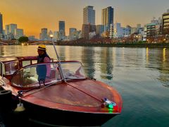かつてヴェネツィアの運河を走っていたボートを貸切に。日没の時間に合わせて、スパークリングワイン片手にクルージングへ出発♪キラキラの夜景を楽しんだら、川沿いのレストラン「& ISLAND」へ。店内も外の景色もお洒落な空間で美味しいディナーをどうぞ。