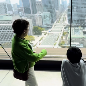 空中庭園へのエスカレーターで、ワクワク。外に出た時に雨が降ってしまったのが、ちょっと残念でした〜。