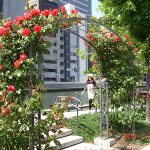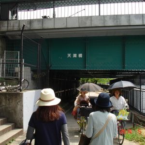当日は、中之島公園付近のバラが咲き始めた時期で、大川(旧淀川)沿いに大阪城まで、ツアーに参加していなければ見られないまちなみ、裏道、見過ごしやすいスポットを丁寧にガイドしてもらいました。