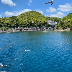 伊根湾めぐり乗船中、かもめへのエサやりは大変人気ですが