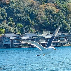 遊覧船は遠くから舟屋を眺める感じで、どちらかというと、カモメにばかり気を取られてしまいます。笑