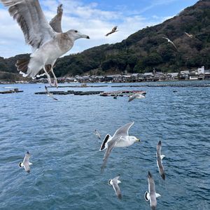 天の橋立の後の伊根湾巡りでは、周りの気色よりもカモメとトンビ?に餌をやるのがかなり面白かった!あんなにすぐに集まり、手からかっぱえびせんを食べるなんて、凄い。