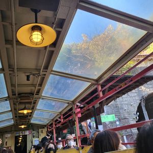 トロッコ列車の当日券売り場が、朝から大混雑で、午前中はすぐ売り切れだったので、こちらで予約しておいて本当に良かったです。窓のないリッチ号がおすすめです。眼の前の紅葉が美しく、ときに、もみじがひらひらと列車の中に舞い降りてとても素晴らしい時間を過ごせました。トロッコ列車を降りて、帰りは保津川下り。水量がとても少ないため、船頭さんが棒で押して進むので2時間かかりました。ただ、朝の集合場所が本当に分かりにくく、迷ってたどり着けず、バスに乗れない方もいて気の毒でした。早めに駅に行ったのですが、全然分からず探し回ってやっと引率者に会えました。引率者の方が、例えば駅を出たところで立っているとか、集合場所をもっと分かりやすい場所にするとか工夫してほしかったです。すごく混雑していたので、引率者の方には、声を出して分かりやすく案内してほしかったです。バスの前に書いてあるツアー名も、もっと分かりやすく表記して、一目でわかる目印の旗などを、バス前に掲示してくれたら良かったです。旅行はとても楽しかったので、集合しやすい工夫をお願いします。