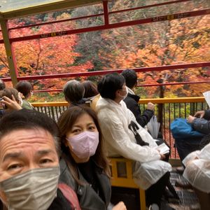 秋の京都旅行、天気も気温も良かったです。京都駅バス乗降場所での集合する場所が分かりづらく、バスの乗車時間に遅れて来た人も居ました。各ツァ-事に集まれる所、行き先が一目で分かりやすくされていたら、時間に遅れる事なくバスは定刻で発車出来たと思います!御年配の方や外国からの方などは、迷ってしまうと思います!改善お願いします!トロッコ列車リッチ号は風を直接受けながら紅葉の山を眺めて、下には川を下る船に手を振りながらと、あっという間の素敵な時間でした。その後バスで保津川下りまで移動、船に乗り船頭さん3名で舵を取り、時折り急な流れの場所では、川水が跳ね上がってきたりと、スリルあり笑いありで、保津川下りを体験できて、とても楽しかったです。嵐山での散策も、紅葉の時期で人が多く出て居ましたが、食べ歩きをしながら、渡月橋嵐山を散策できました。添乗員のシュウさんは、面白い話し方で笑わせてくれました。この旅の中で1番面白かったかも!良い思いでになりました!ありがとうございました!またシユウさんの添乗で、参加したいです!シユウさんありがとう( ^_^)/~~~