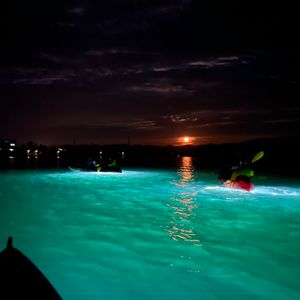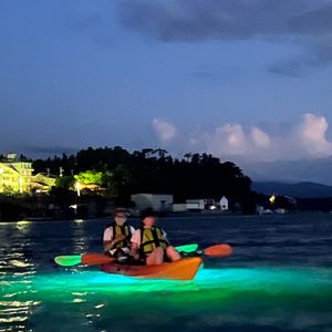初めてのナイトカヤック体験。カラフルに光るクラゲや魚、美しい海、そして気持ちいい海風と、光る月!