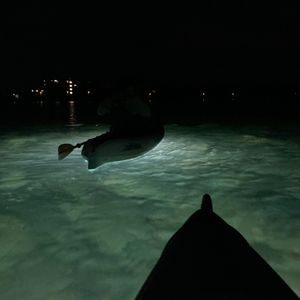 カヤックからライトを水中に吊るして光源にするので、はしめはクラゲがたくさん?!と思ったのですが、小さな魚がプランクトンを食べる様子、エイまで見ることができて感動しました。とても幻想的な体験ができて嬉しいです。