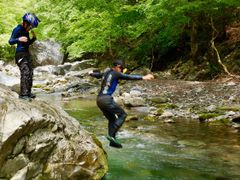 3つのアクティビティを1つのツアーで体験!鍾乳洞の中の洞窟体験、琵琶湖への源流での沢登り。そしてロッククライミング(ボルダリング)の後は、開放的な大岩の上でのランチタイム♪難易度は低めで、小学生から参加可能。大自然へ、いざ出発!