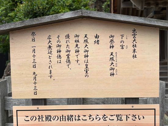 神在祭で「縁結びの会議」が行われる場所を伝えられています。上の宮と下の宮を両方参拝するのが正式参拝と言われています。