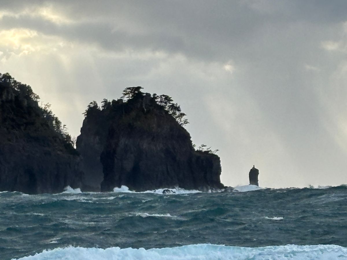 翌日のフェリーの情報や、波の予報もガイドの方が事前に調べておられ、そのおかげで本州に帰れました。