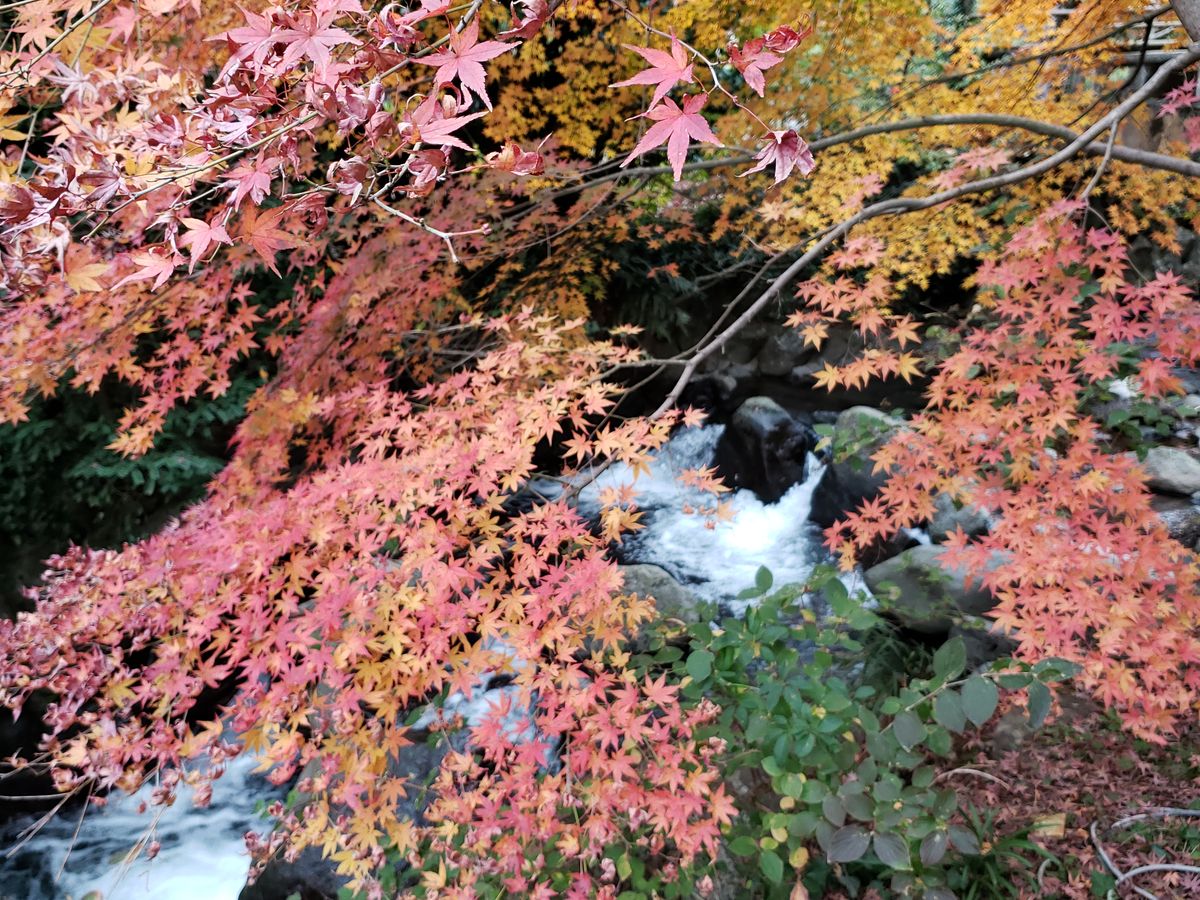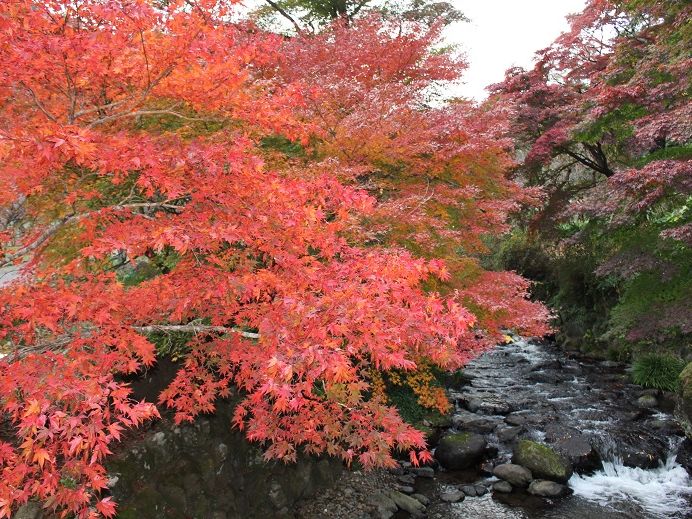 ツアーの最後は熱海梅園です。たぶん早咲きの梅と思いますが、一部花をつけた小さな木を散見しました。ただ主役は紅い葉っぱです。季節からして終わりが近いのでしょうが、とてもきれいでした。こちらは比較的時間が長く設定されており、落ち着いて園内を散策できました。