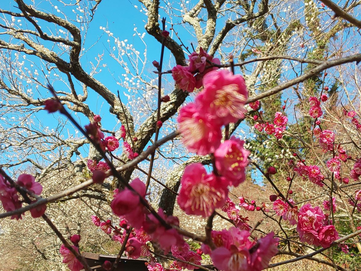 ガイドさんのトークも味わい深く、梅園の梅も見ごろでした。