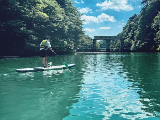 初めてのSUP体験、しかも愛犬も一緒。スタッフさんから「SUPは水中に落ちるもんです」と脅され(?)最初はおっかなびっくりでしたが、すぐに慣れてとても楽しかったです。犬と一緒にSUPにスタンディングできました。もちろんお約束の水中ダイブも。是非また体験したいです。