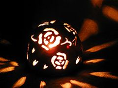 ランプを1個制作できます。陶器に彫刻刀などで透かし彫りを施したり、模様を描いたりします。