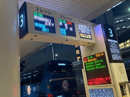 新宿エリアのホテルからバスが来ると思っていたので、三連休で混雑していると思っていたら、空のバスが来てラッキーだった。