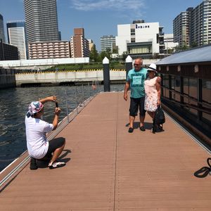 スカイツリーやお台場では停船し、その間デッキに上がる事ができます。心地よい風を感じながら写真撮影ができました。帰り際の船をバックにした写真撮影や、錦織そっくりのスタッフとの記念撮影も気持ちよく応じてくれました。また家族をつれて行きたいです。