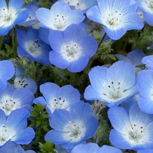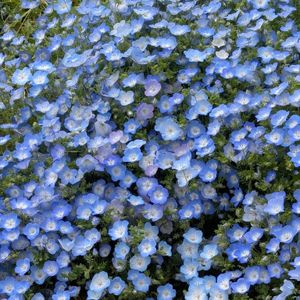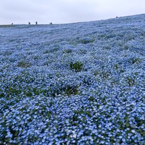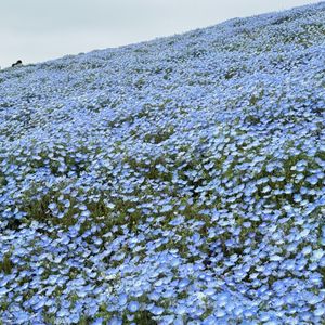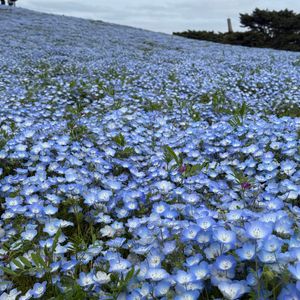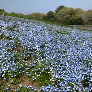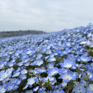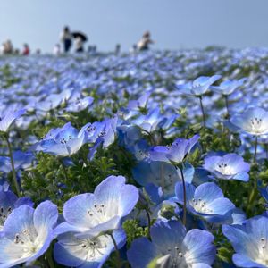 ブルーだけでなく白や薄紫のネモフィラの花が咲き乱れていて、丘に一面に広がるその景色は圧巻です。
