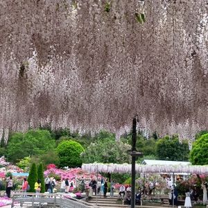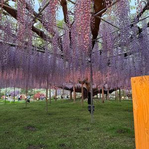 ネモフィラがやや終わりかけの5月11に行きました。ネモフィラが目的の方はもっと早めがいいでしょう。一方であしかがフラワーパークはバラが見頃でとても華やかでした。大藤は終わりの季節でしたが、私はあしかがフラワーパークの大藤は以前見たことがあるのでバラの季節に行けて良かったです。大藤の季節は幻想的なのですが、庭園の一部なのでバラの季節のほうがパーク全体が華やいで楽しめます。パークの佐野ラーメンも美味しくておすすめです。個人で行くと大変な日程なので両方効率よくまわるには良いツアーでした。