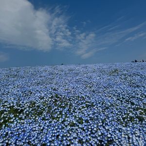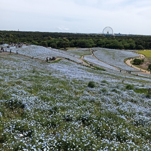 最初の観光地のひたち海浜公園では、私たちが訪れた日にネモフィラが見ごろになったそうで、多くの人が来ていました。