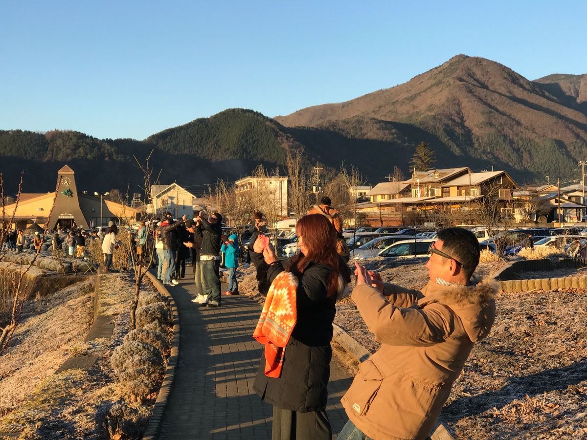 まず初日の出。高速道路の渋滞回避ということもあるのでしょうが、約2時間前後で到着する道のりにもかかわらず1時50分集合し、外が明るくなるまでの時間(6時前後)までバス待機となってしまうは体力の消耗に繋がりました。しかしその疲れすらも吹き飛ぶような美しい初日の出と富士山には感動できました。約1時間半前後フリータイムが設けられますが、公園内に土産店や飲食店があるので、初日の出を待っている間、時間を潰すことができました。ただし外気は氷点下なので暖かい服装でなければ初日の出も美しく見ることができません。天候にも左右されるアクティビティのため、運に任せるしかないものの服装だけは入念に対策をとって挑むことをお勧めします。