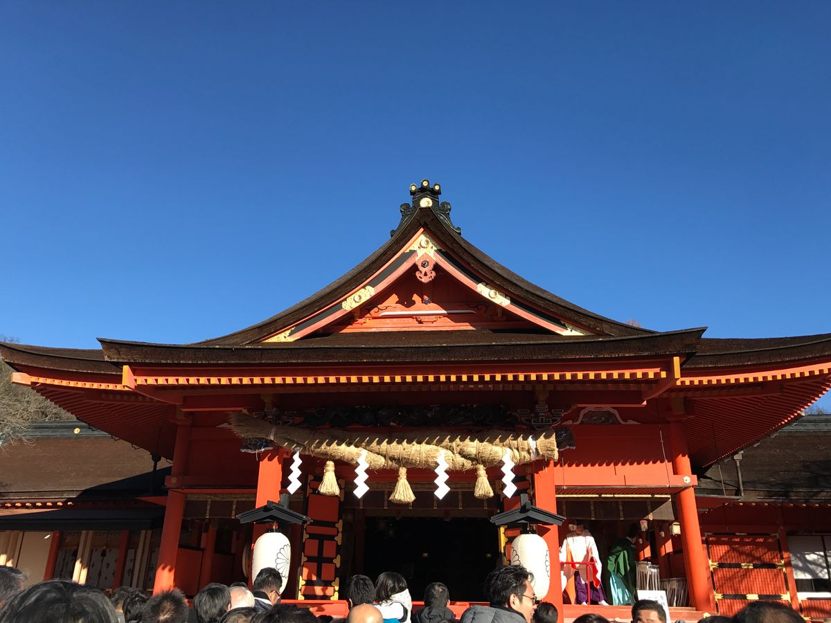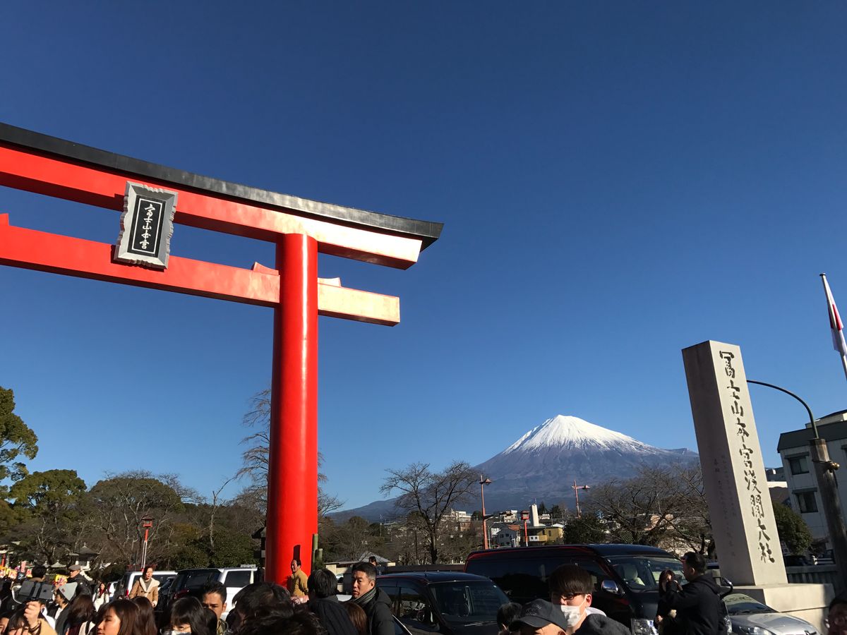 初日の出を見た後、初詣は富士山浅間大社。参拝客もたくさんいて露店も数多く並んでおり楽しめましたが、自由時間が1時間程しか無かった為、浅間大社から見える富士山の記念撮影や、露店で購入した物を食べる時間がなく、車内で食べることになりました。少し時間が短かったと思います。