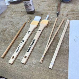 私たちはクゲクラフトへの訪問をとても楽しみました!ホストの方々はとても素敵で、私たちと彼らのクラフトを共有することに熱心で、質問にも喜んで答えてくれました。また、私たちの制作プロセスを導くために、美しい金継ぎのサンプルをたくさん提供してくれました。1日クラスに参加する場合、小さなカップの欠けを修復する時間しかないので、完全なひび割れを修理することはできません。これらは乾燥に時間がかかります。しかし、金のアクセントで作品を塗る時間はたっぷりあります!