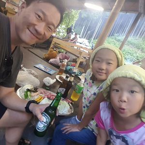 親切なインストラクターさん(イケメン)にいろいろ安全のための重要な説明を聞いてから自分の合図に合う装備を着用して川にGo!奥多摩の水は少し冷たくて寒かったんですが動き始めてすぐに寒さはあんまり感じなくなりとても楽しい冒険をしました。それからうちの家族はオプションのBBQを申し込んでいたのでおいしいBBQを食べながら山の中で遊べました。BBQが終わる時間に合わせて車で迎えに来てくれるので便利でした。