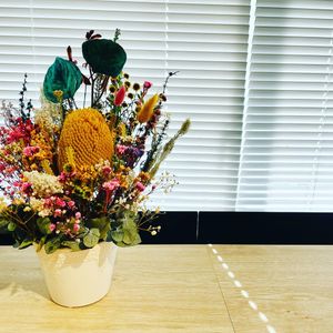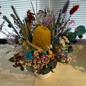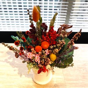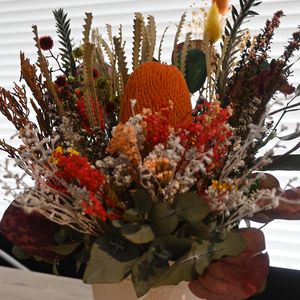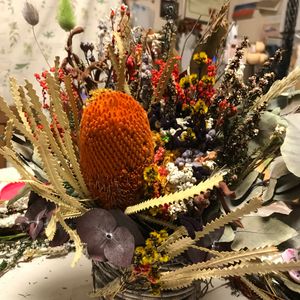 思うがままに自由にお花を選ばせていただいて、自分の好きなように自分だけの作品ができました。美しく染められた西オーストラリアのワイルドフラワー。お花ひとつひとつ意味があって、選んだお花は、その時の自分の感情や必要としているパワーを表すんだそうです。お花が持つパワーって不思議です。
