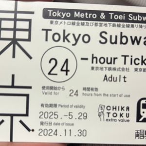 | プラン: | Tokyo Subway 24-hour Ticket |