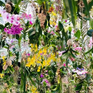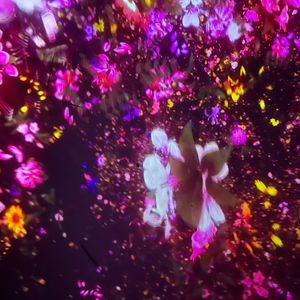 カラフルに光り輝く暖簾のようなLEDに身を置き、天井に浮遊する華麗な花々と蝶々を見上げ、温かい足湯のような感じのウォーターエリアの水面を泳ぐ錦鯉や鮮やかな花に触れ、滴り落ちるしずくを掌で受け止め、生花の蘭に魅了されて、自分が作品と一体化出来たような感覚が一生忘れられない素敵な想い出になりました。