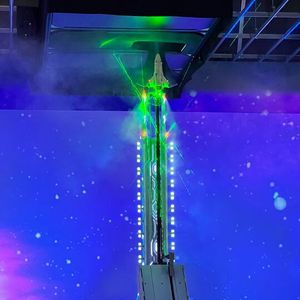 カラフルに光り輝く暖簾のようなLED、天井に浮遊する華麗な花々と蝶々、ウォーターエリアの水面を泳ぐ錦鯉、滴り落ちるしずく、圧巻の生花蘭〜全てが鏡張りの効果絶大‼︎