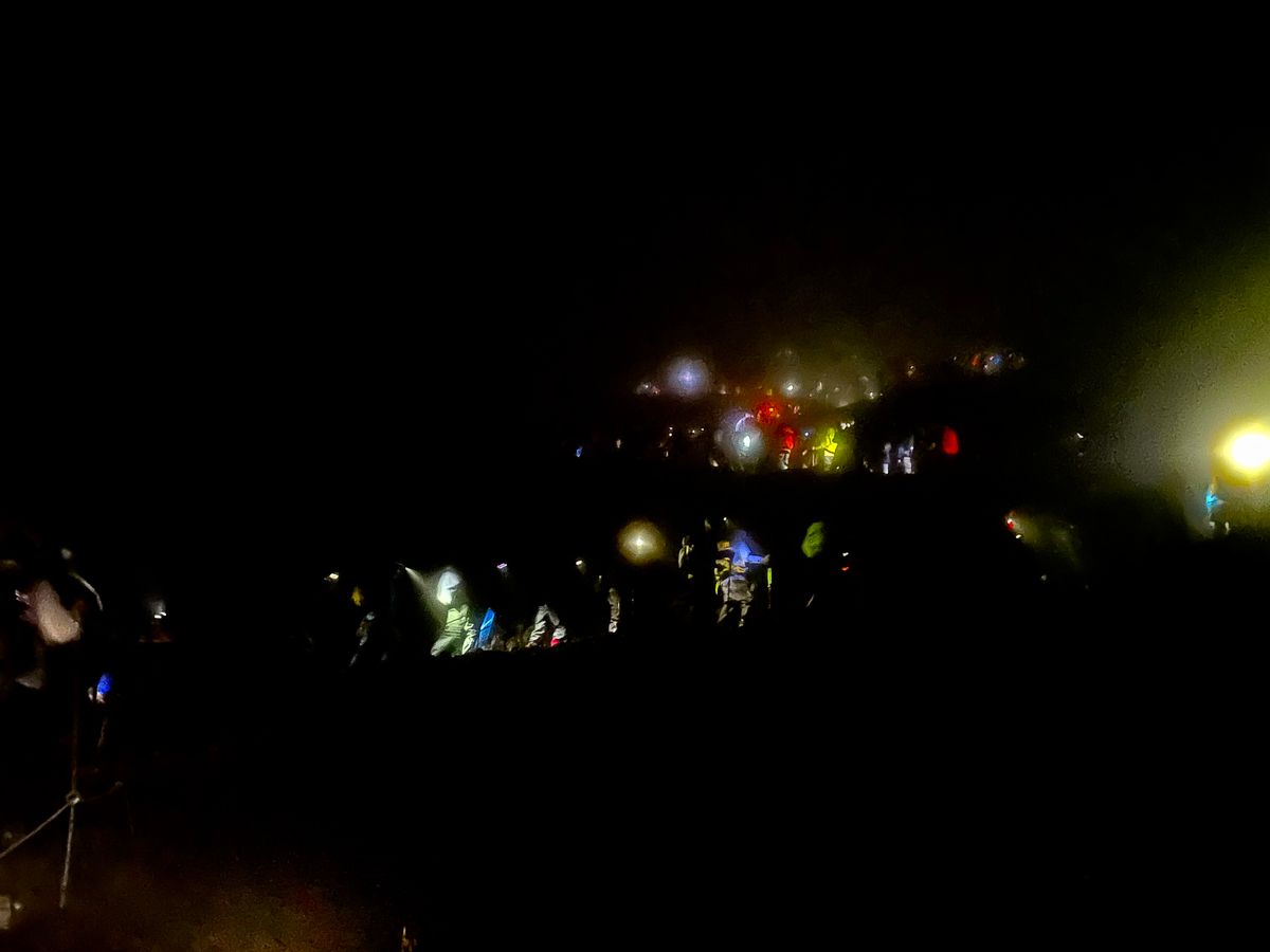 台風後ということもあり、頂上到着後は大雨でした。頂上の山小屋はツアーの方のみしか入れず寒さと人混みですぐ下山。