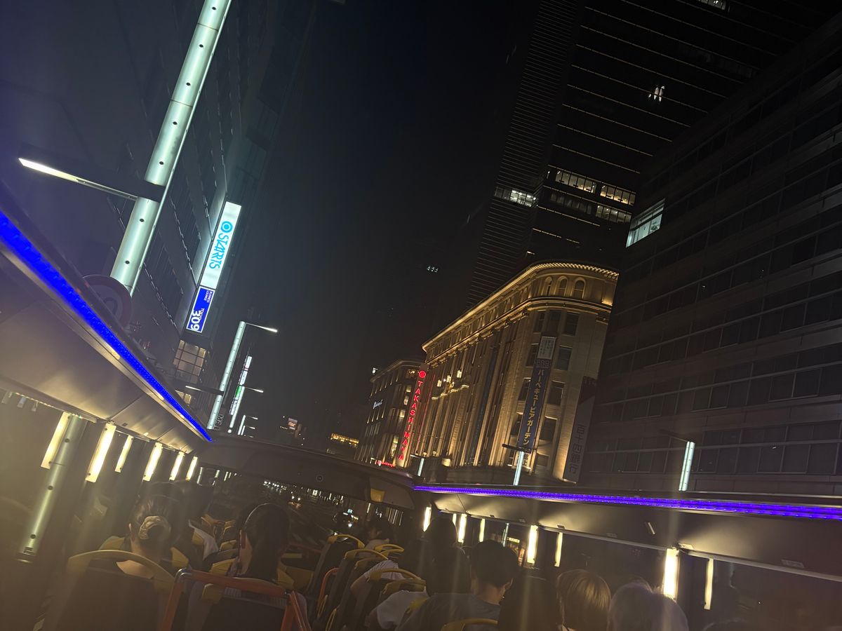 他社のオープントップのバスに比べると、ガラス窓がブラウン系のため(UVカットなのかしら⁈)視界不良感が否めず、薄暗くなってからの乗車は特にお勧めできません。(残念ながら、ライトアップされている箇所がほとんどないので、目を凝らさないと桜が見えないレベル)