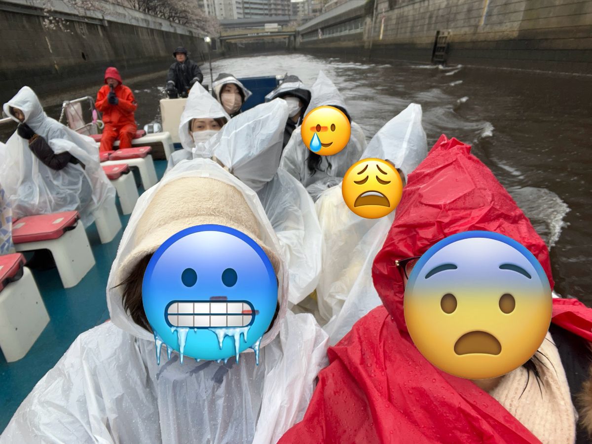 あいにくの小雨でしたが、レインコートを配布いただきました。注意事項にあった通り、河辺はより寒くてダウンコートを着ていって正解でした。
