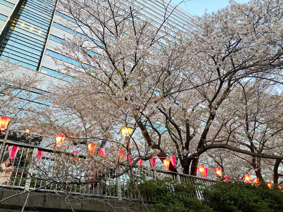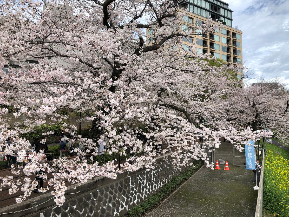 川に浮かぶ桜の花びらが美しかったです。コロナの制限も緩和され、軽い飲食がokでした。