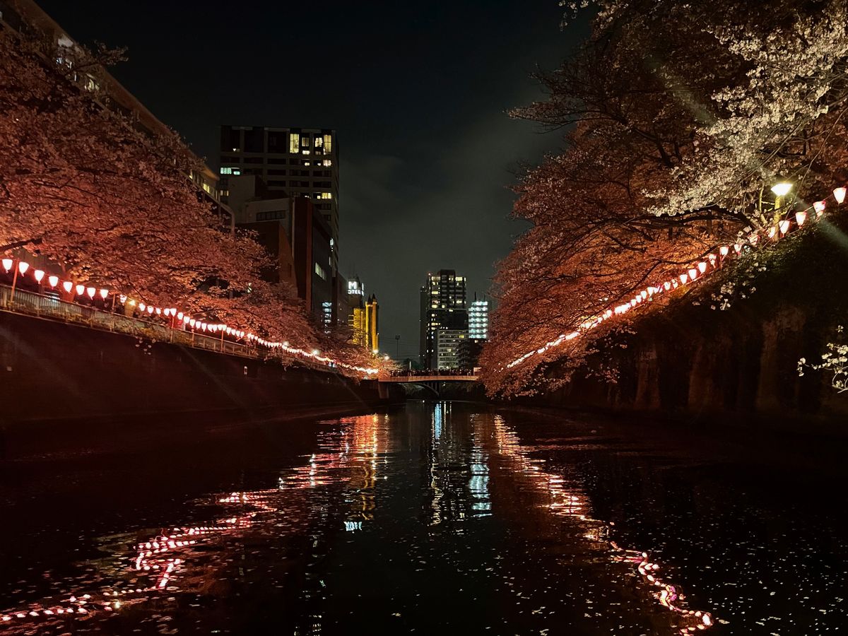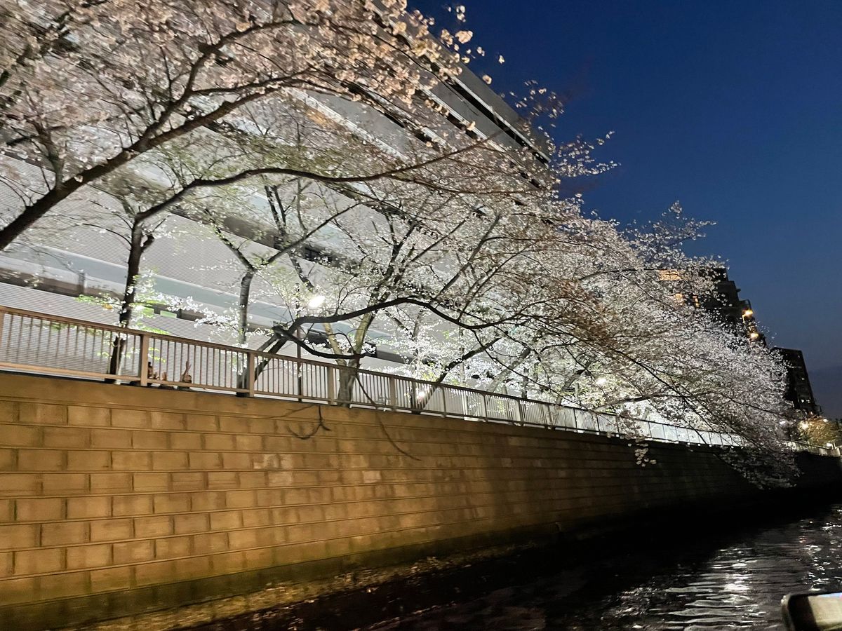船が照らす照明や街灯でも夜桜を見ることができるのですが、暗いところは桜が見辛かったので、来年参加する機会があれば、お昼のクルーズで青空の下の桜を見たいです♪