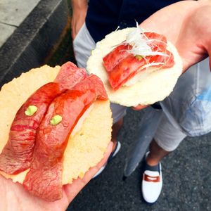 投稿させていただいた写真は,目的地の白川郷のものと飛騨牛の