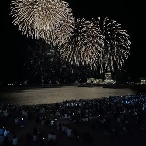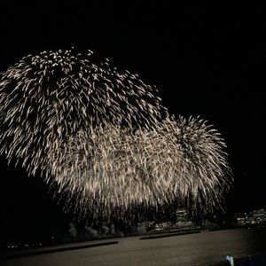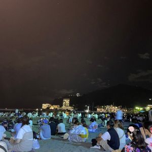 ・花火は、砂浜で座ってみると花火の音と波動がお腹に響いて、都心の花火大会とは比べものにならない満足感がありました。20分間ほどなので体育座りでもつらさも感じなかったですが、敷物を持参して寝そべってみてみたかったです。