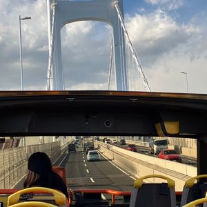 屋根がない分、高速道路を、風を感じながら走るので、よりスピード感が増して興奮します、2階建バスなのでトンネルの天上に手が届きそう、立体交差や標識、信号機も間近、最後は電車の高架下ギリギリを通過、思わず頭を抱えてしまう迫力!