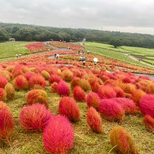 雨の中のツアーで、コキアも来週末見頃という感じでした。