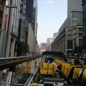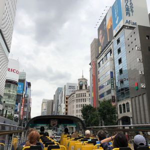 他の都市で乗り降り自由のバスを楽しんできたので、東京でも試してみることにしました。2つのループがあり、私たちは長いループ(90分)を選び、翌朝に短いループ(60分)に戻ることにしました。パスは24時間有効で、とても便利です。私たちが乗ったバスは二階建てではありませんでしたが、透明な屋根がありました。残念ながら、屋根は劣化していて鈍い色合いなので、視界は良好ですが、写真を撮るにはあまり向いていません。ヘッドフォンが渡され、旅行をナレーションするサウンドトラックに接続します。いくつかの言語から選ぶことができます。これは効率的ですが、あまり面白くはありませんでした。ナレーションは、私たちの視界の直接的なラインにないものを見てほしいと指示しましたが、他の建物の後ろに隠れていることが多かったです。私たちは本当にただ乗っていたかっただけで、降りるつもりはありませんでした。降りていればもっと見ることができたので、基本的にはただのバスライドで、素晴らしいツアーとは言えませんでした。私たちは翌日、2回目のループには戻らないことにしました。