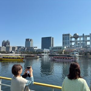 桜が見れなかったので、お台場で停泊して外に出て記念撮影したりした後に、スカイツリー方面へと上流へ上っていきます。