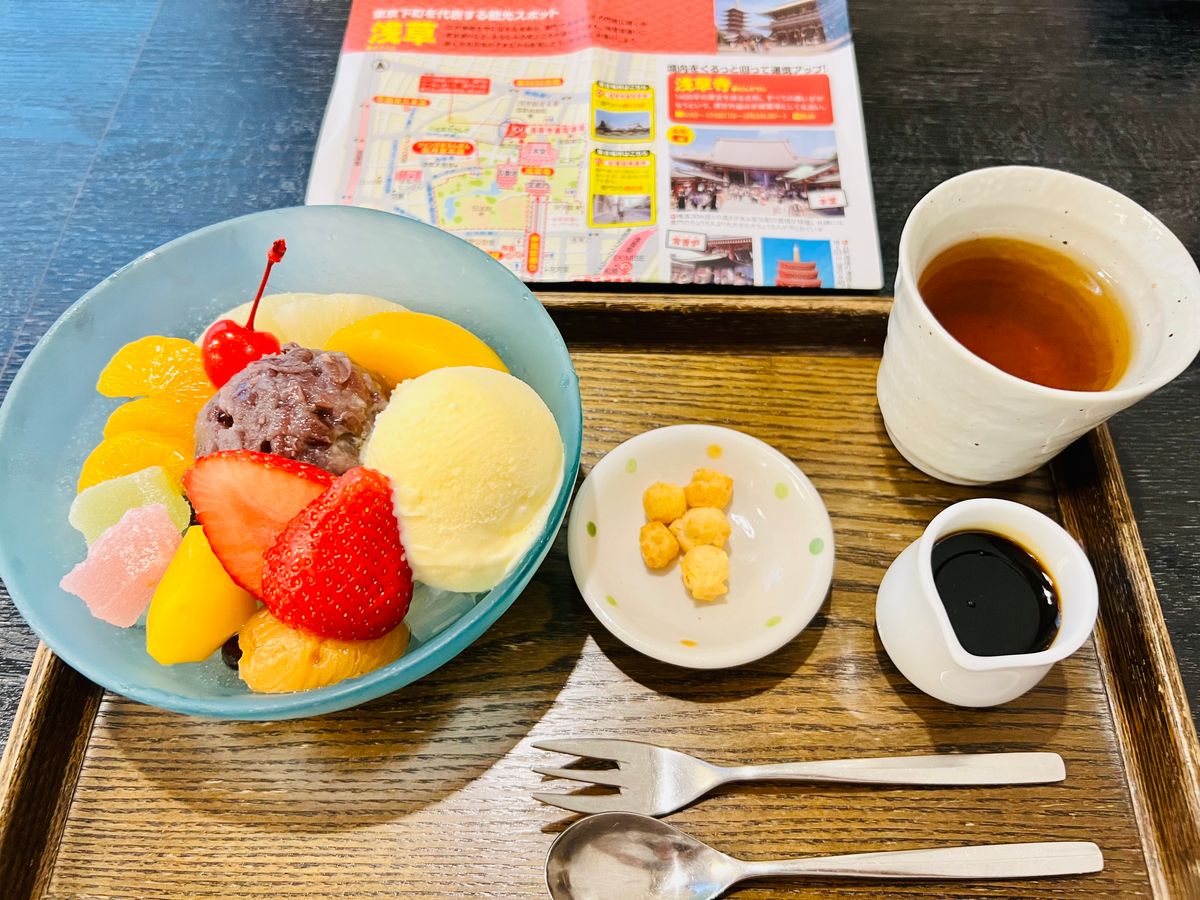 昼食の、浅草の天ぷら屋さんの天ぷら、ボリュームがありとても美味しかったです。