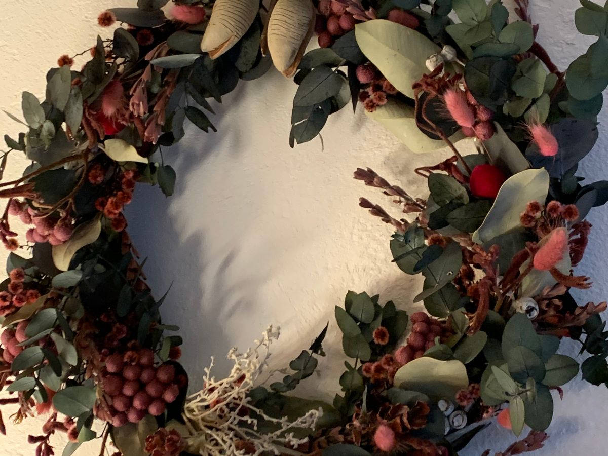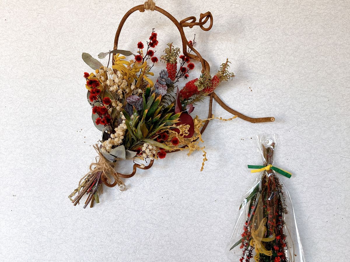 先生やお弟子さんが作られたフラワーリースが店内に飾ってあったのですが、綺麗なことはもちろん、普段お花屋さんで見かけるものとは違い、野性味があって力強い植物は見てるだけでもパワーを貰えるような気がする不思議なもので、お花好きの母が元気なうちに現地に行ってその美しさとパワーを生で感じてみたいという思いをとても強く持ちました。