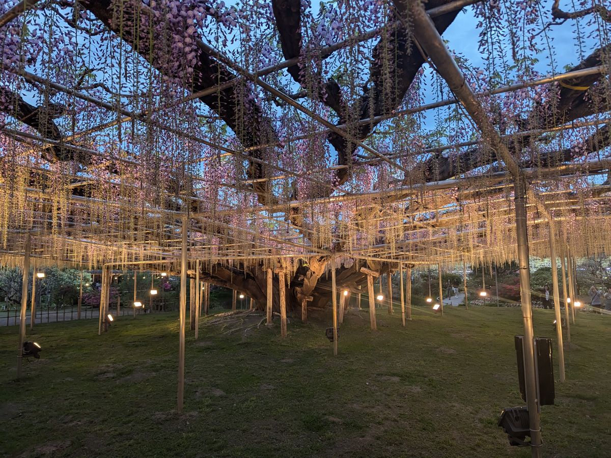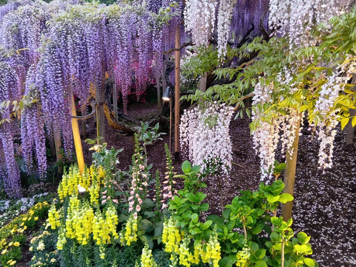 あしかがフラワーパークは、私が行った時は18時半で空が見えなくなるくらい暗くなったので、ライトアップを楽しむ場合は、もっと日没が早い時期の方が良いかもしれません。