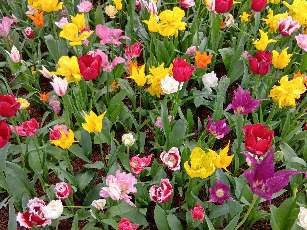 また、その日はチューリップも見ごろで、オランダのキューケンホフ公園の造園にも携わった方の協力で作られたチューリップ庭園では、色とりどりの品種が違う花々にうっとりしました。犬を連れた方々も多くいらっしゃり、中にはピンクのドレスに飾られた犬とチューリップの撮影をされている方も、、、。癒されました。